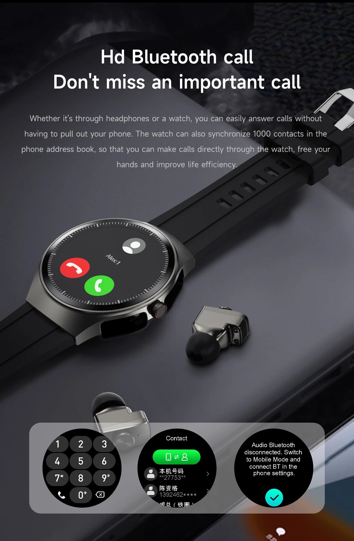 Inform when this item available GEJIAN Smartwatch with Built-in Headphones & AMOLED Display
